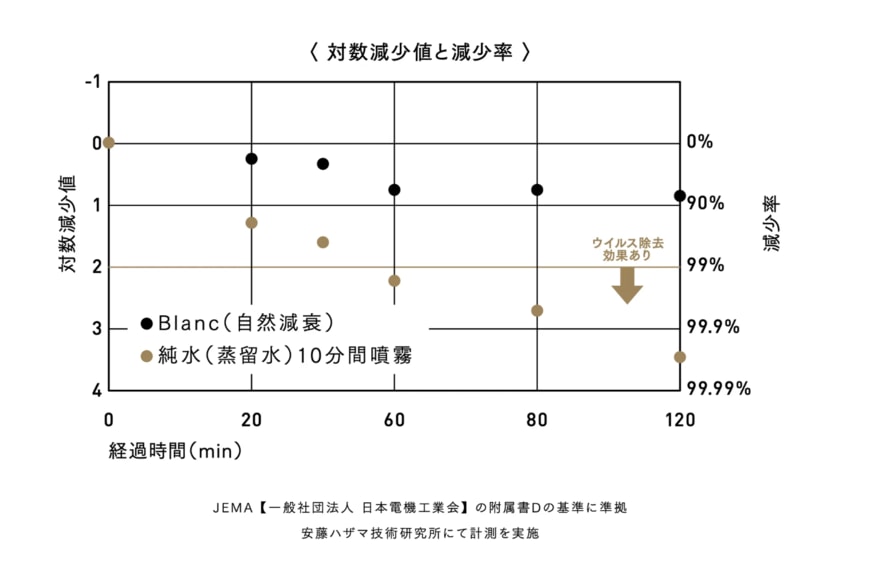 ちなみに、ウイルスの減少に関しては、大手建設会社である安藤ハザマの技術研究所との共同研究でエビデンスも提示されており、信頼性の高いものとなっています。
