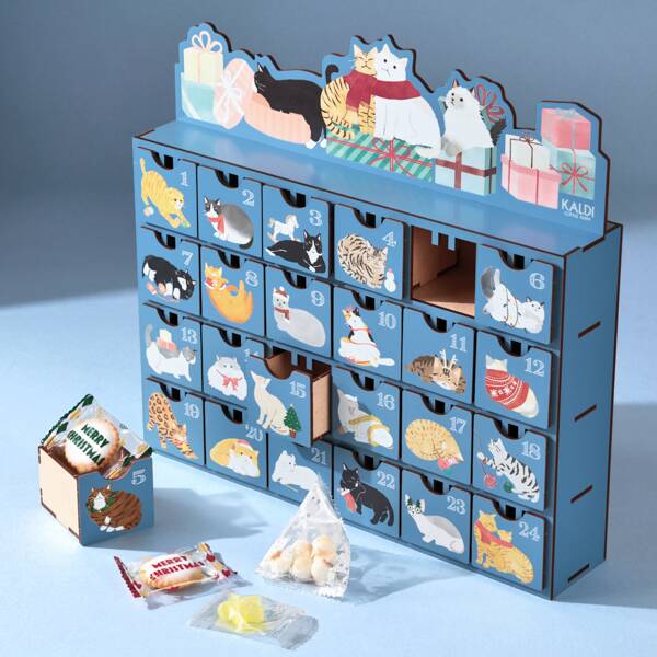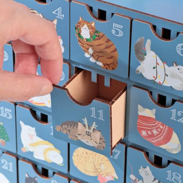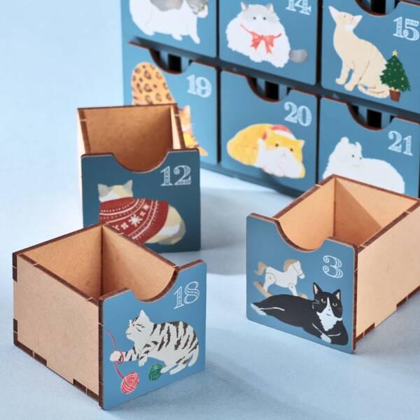 三毛猫や黒ねこなど、さまざまな猫が描かれた引き出しを1日ずつ開けながら、12月1日から24日までクリスマスをカウントダウンして楽しめるアドベントカレンダー。