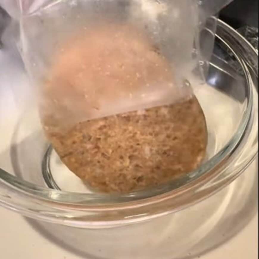 ハンバーグのたねをボウルでよくこね、サンドイッチに使うパンと同じように四角く形を整えました。