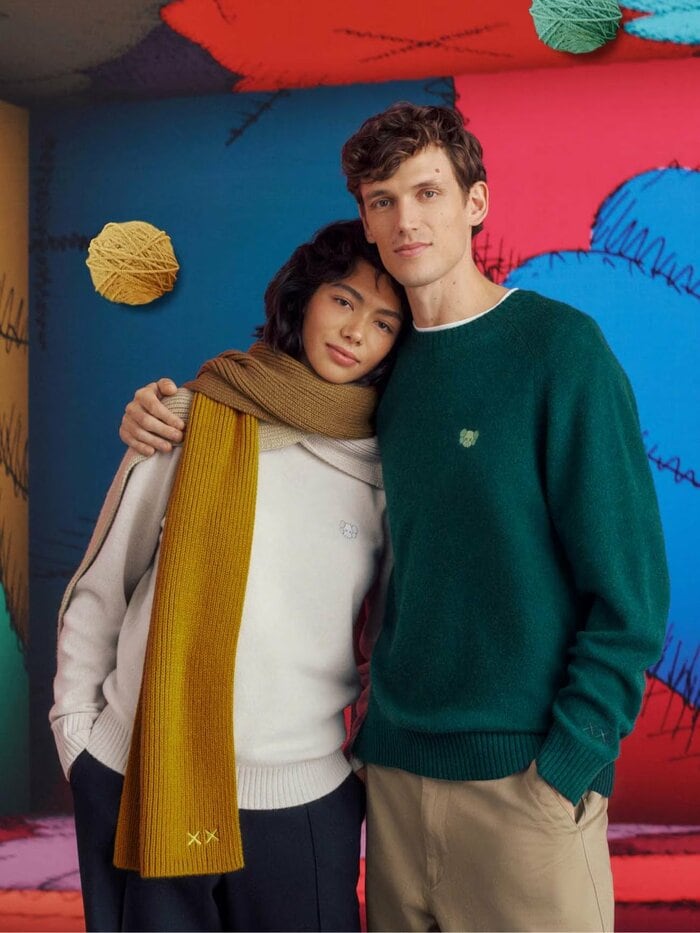 繊維の宝石と称されるカシミヤを100%使用した、まさに主役級のセーターです。うっとりするような滑らかな肌触りは一度着たら手放せなくなる心地よさ。左胸には「XX」モチーフの刺繍が施されており、さりげなくKAWSの世界観をアピールできます。