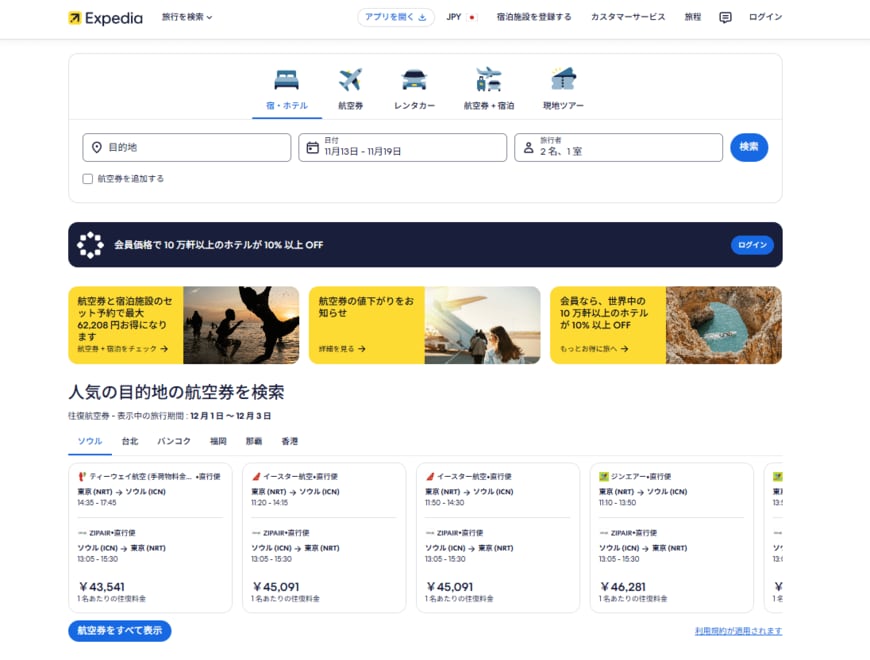 大手総合旅行ブランドのエクスペディア・ジャパンは、11月11日、国内・海外の対象ホテル&パッケージ予約が会員価格で最大50%OFFとなる「ブラックフライデーセール」を発表しました。2025年11月20日(木)0:00〜 12月3日(水)23:59の期間で開催します。