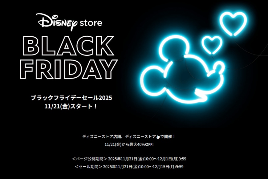 ウォルト・ディズニー・ジャパン株式会社は、2025年11月11日、ディズニーストアで開催するブラックフライデーセールの詳細を発表しました。SNSでは限定商品となるブラックスタイルのミッキー&ミニーが話題です。