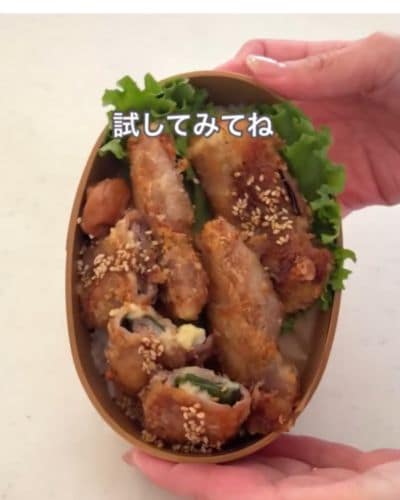 しそチーズカツがゴロゴロと詰まったボリューム満点のお弁当は、どう見ても「朝揚げただけ」には見えない豪華さです。