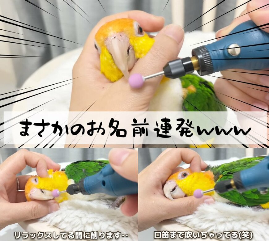 2. 【くちばし削り中のインコ】ハイテンションで「まさかの言葉」を連呼