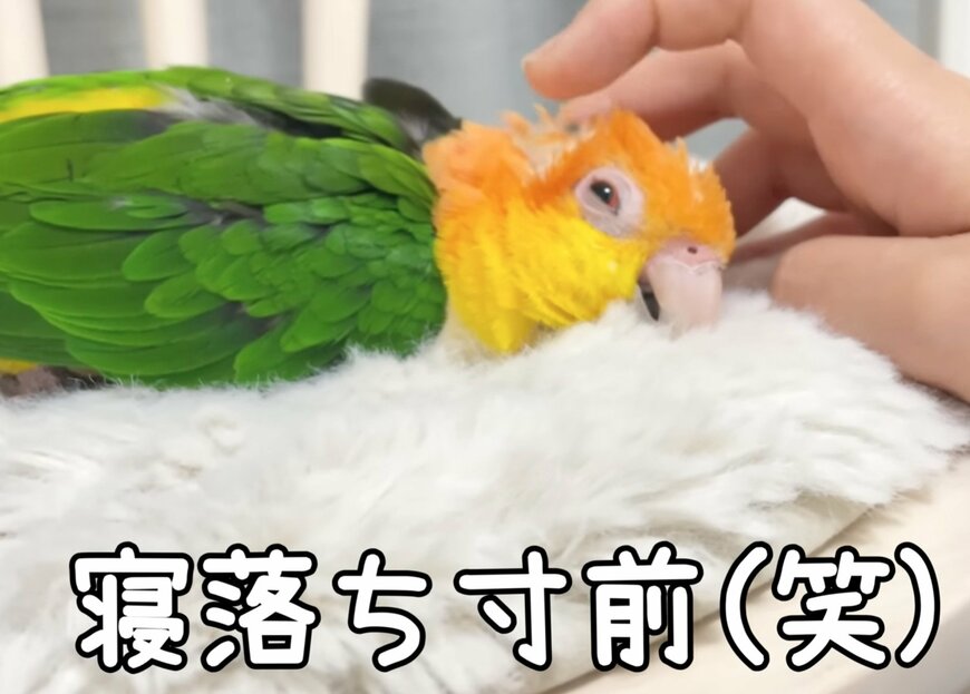 くちばし削りを終えたとろろちゃん、お手入れが気持ち良かったのか寝落ち寸前です。