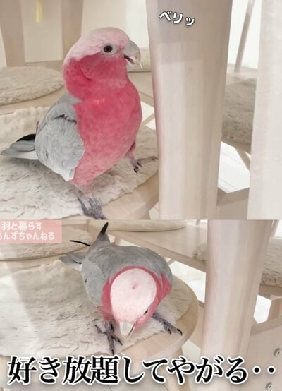 動画に登場しているのは、モモイロインコの「みりん」ちゃん。
