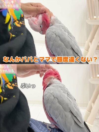 お説教中にパパとママで違う反応をするみりんちゃん、とても可愛らしいですね。