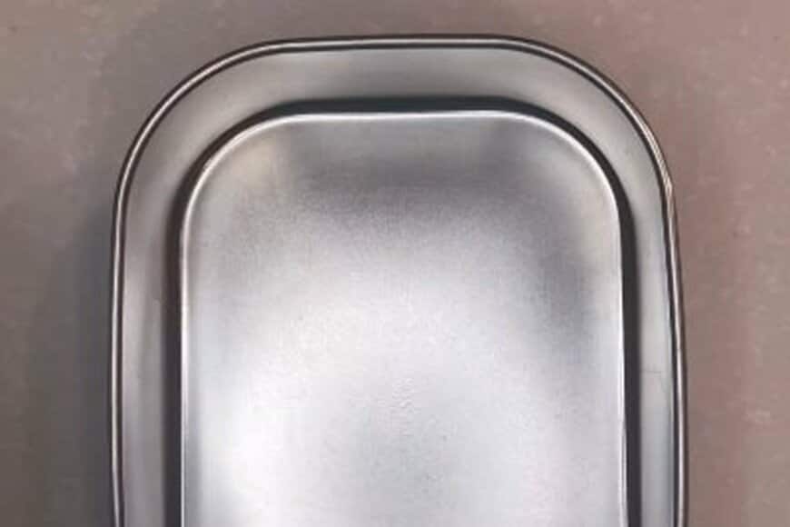 まずはお弁当箱に白いご飯を入れ、長辺に合わせて形を整えます。ご飯におかずの味が移らないよう、バランを2枚添えました。