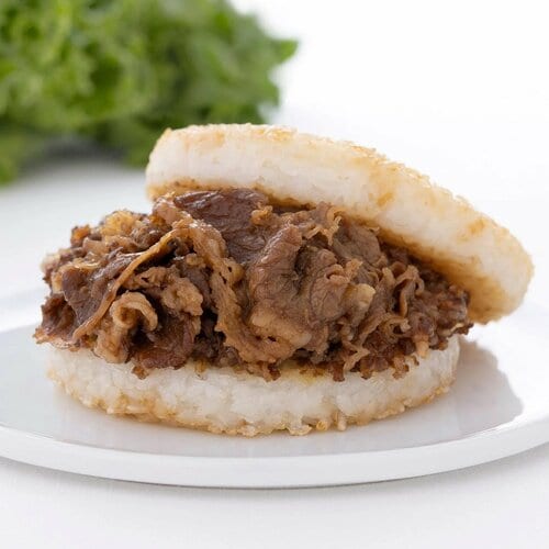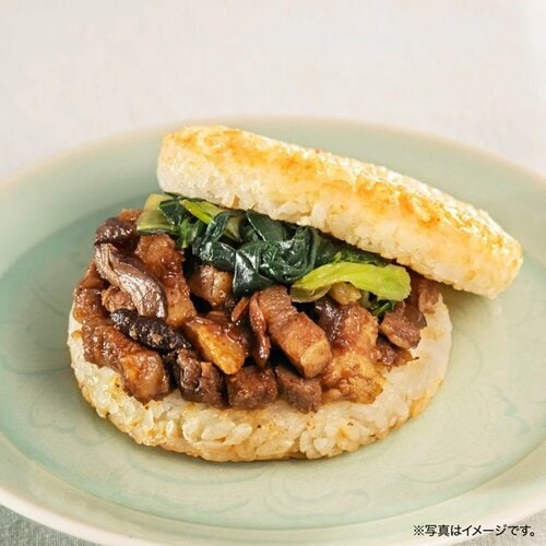 台湾で愛される国民的料理「魯肉飯(ルーローハン)」をイメージしたライスバーガーです。甘辛いタレで煮込んだ豚バラ肉と八角やシナモンなどをミックスした五香粉の風味がクセになる本格的な味わいを楽しんでくださいね。アクセントにチンゲン菜もプラスしています。