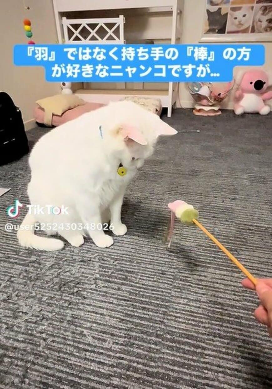 おもちゃの猫じゃらしは、羽よりも棒が好きなんだとか。