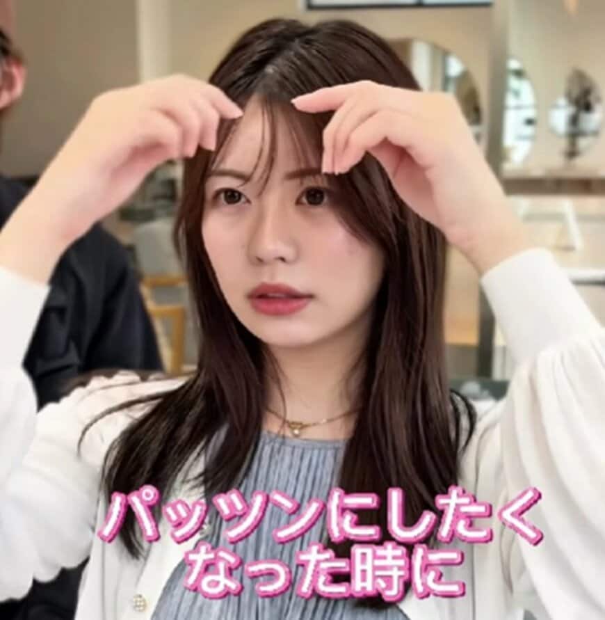 「パッツンにしたくなったときに、すごいきれいなパッツンの子っているじゃないですか。けど、それになれなくて…」と、前髪をパッツンにしたとき、満足のいく仕上がりにならないことにお悩みのようです。