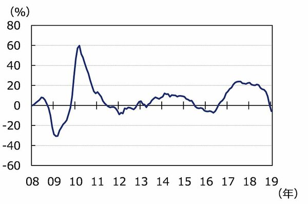 日銀は、3月14~15日に開催した金融政策決定会合で、金融政策の据え置きを決定しました。そして、国内経済全体は「緩やかに拡大している」という判断を維持したものの、「輸出・生産面に海外経済の減速の影響がみられるものの」という表現が付け加えられ、「輸出は、足もとでは弱めの動き」としています。