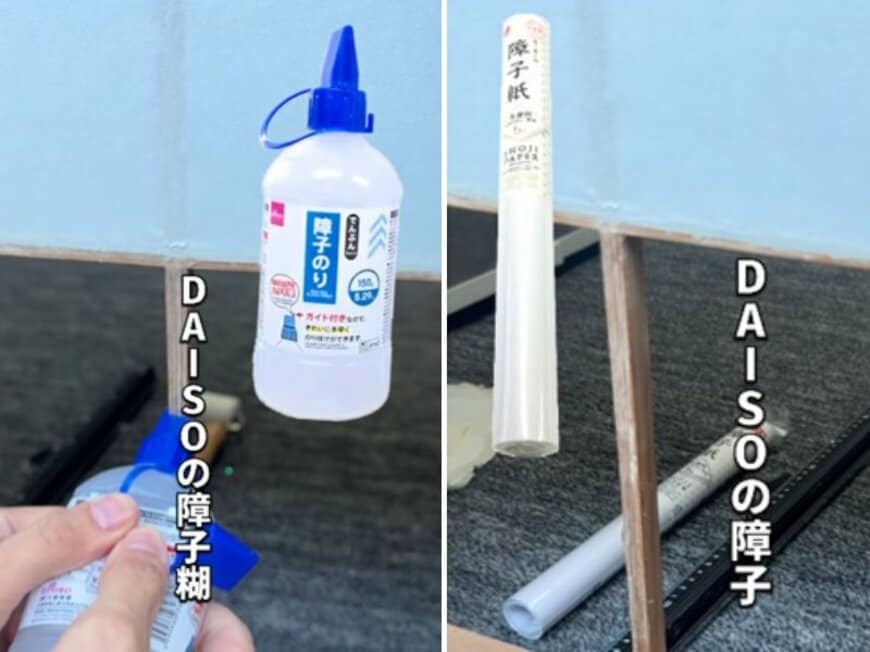 今回の動画では、ダイソーの障子紙と障子糊を使って、破れてしまった障子を部分的に張り替えます。