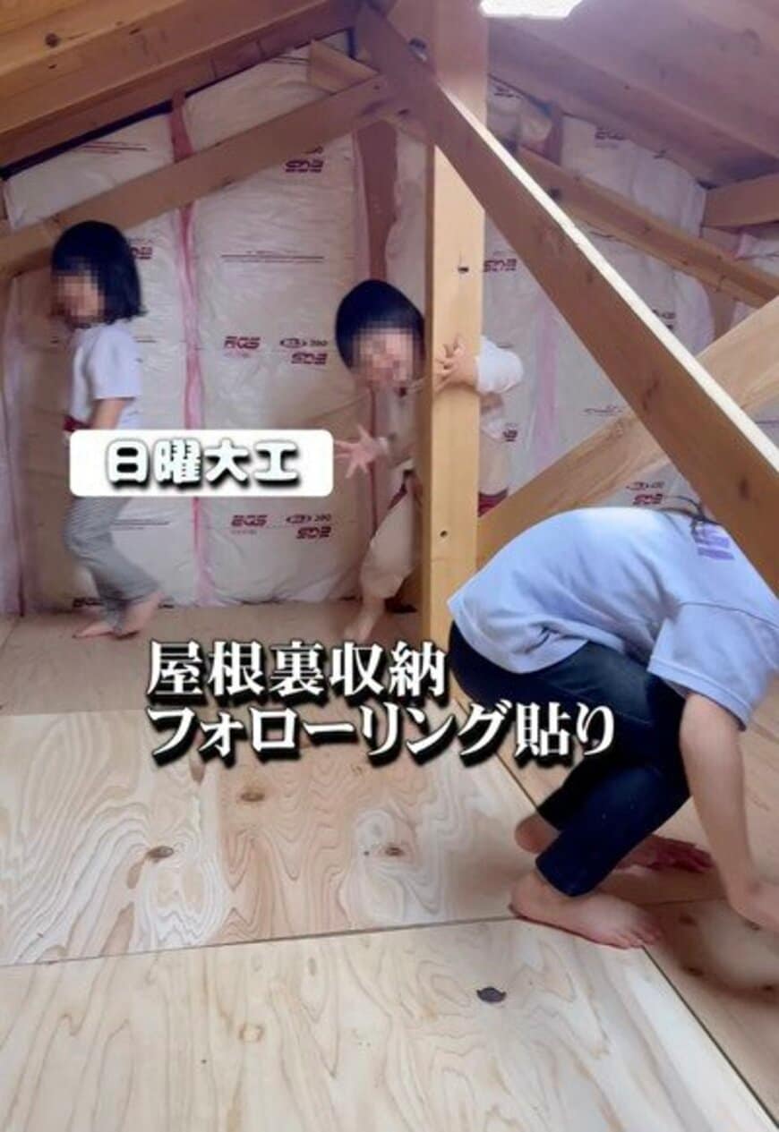 DIYテクニックを発信しているInstagramerが、板材丸出しの屋根裏の床に、捨て張り工法でフローリングを貼ることに!美しい床に大変身させて、「お見事!」「素晴らしい!」と話題になっています。