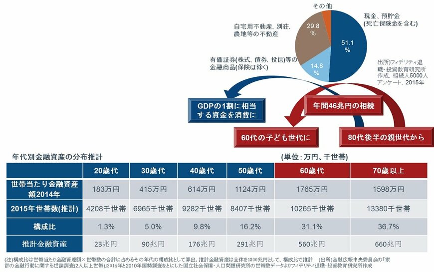資産を持った高齢者が地方都市に移住しても、そこで高齢者が資産を消費に変えていかなければ地方経済にとってメリットはありません。退職後の生活資産を実際にその土地で消費に回して使う仕組みを充実させることもあわせて必要になります。年間の相続額はGDPの1割弱に相当すると推計され(前述のアンケート調査を参照)、その1割でも消費に回れば、単純計算でGDPを1%押し上げる力になります。