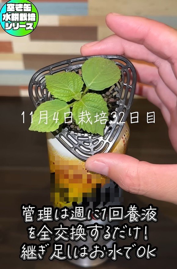このあとの管理は「水量が減ったら水を継ぎ足す」「1週間に1度、新しい液体肥料に全交換する」の2つ。葉が増えると、水の減りが早くなるそうです。