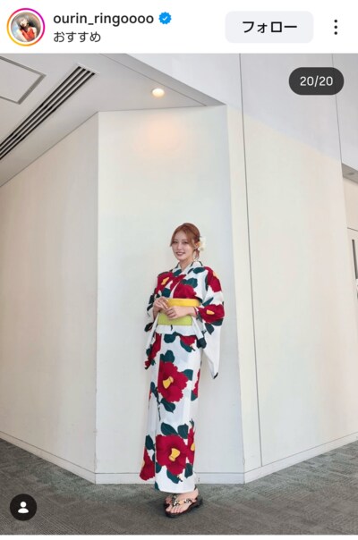 そして、花柄の浴衣姿も公開しました。レザーショートパンツ姿とは打って変わって、和風な装いとなっています。