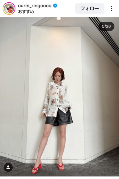 3. 【Instagram】王林、スラリと伸びた脚が際立つレザーショートパンツ姿