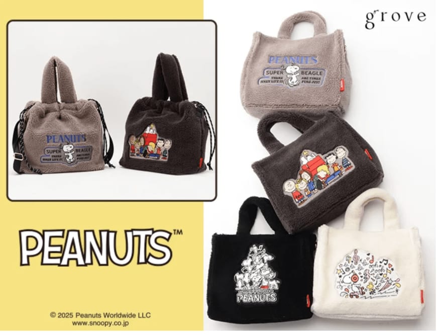 今回タッグを組んだのは世界中で愛され続ける「PEANUTS(ピーナッツ)」。2025年に迎える生誕75周年を記念した、groveでしか手に入らない特別なオリジナルアイテムです。