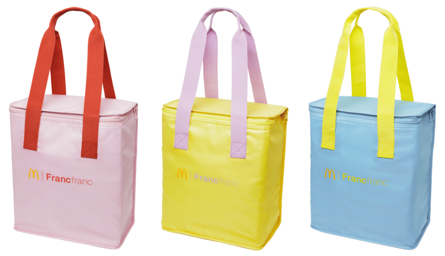 容量たっぷりの保温・保冷バッグ。11L入って肩掛けもできるので、荷物が多い日にも便利です。日々の買い物が楽しくなりそうな明るい3色をラインナップしています(福袋に入ってるのはいずれか1色)。Francfrancのロゴも入っています!