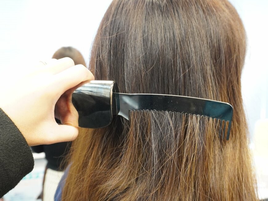 「美髪TRUE COMB」は、超⾳波と導⼊超微電流を同時出⼒することで超⾳波振動を発⽣させ、トリートメント成分の微細化やイオンの浸透を促すアイテム。イベントでは、くしを通すことで瞬時に指通りのよい髪になるデモンストレーションも披露されました。