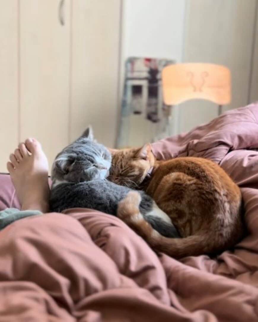 投稿に映っているのは、猫のモッチちゃんとパッチちゃんです。