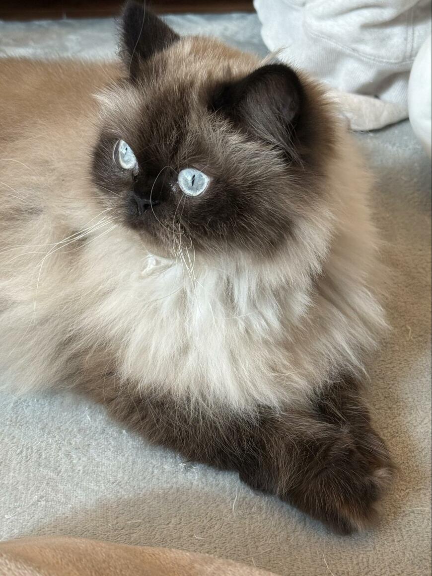 「ヒマラヤン」という種類の猫ちゃんで、思わず触れたくなるふわふわの毛並みがチャームポイントです。