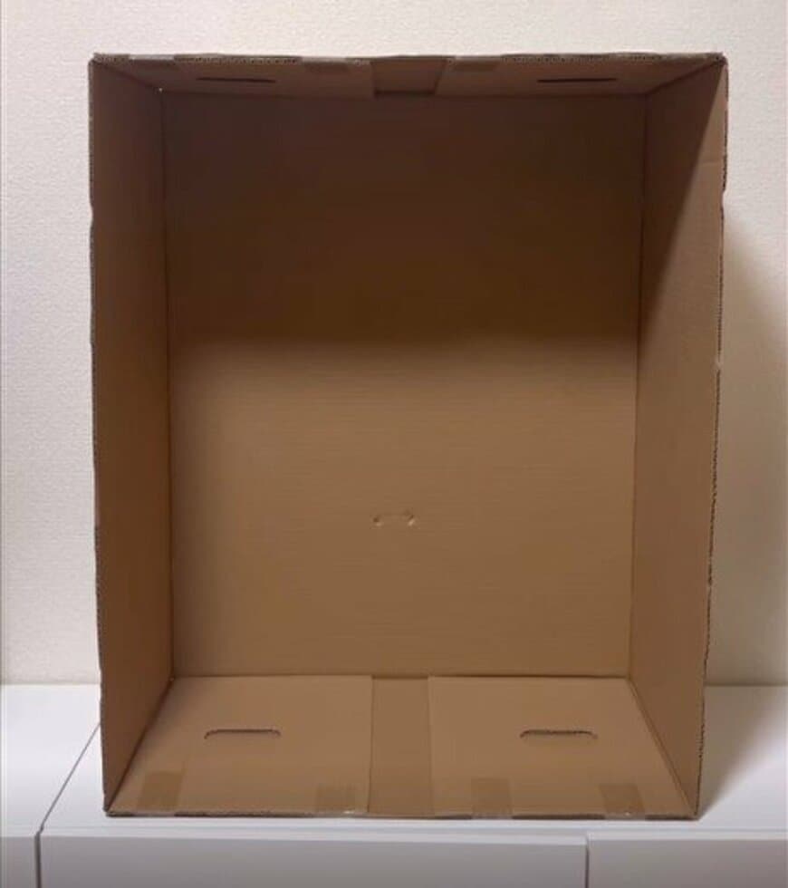 変身前のダンボールは、IKEAで椅子を買ったときについてきたという、何の変哲もない茶色い箱。