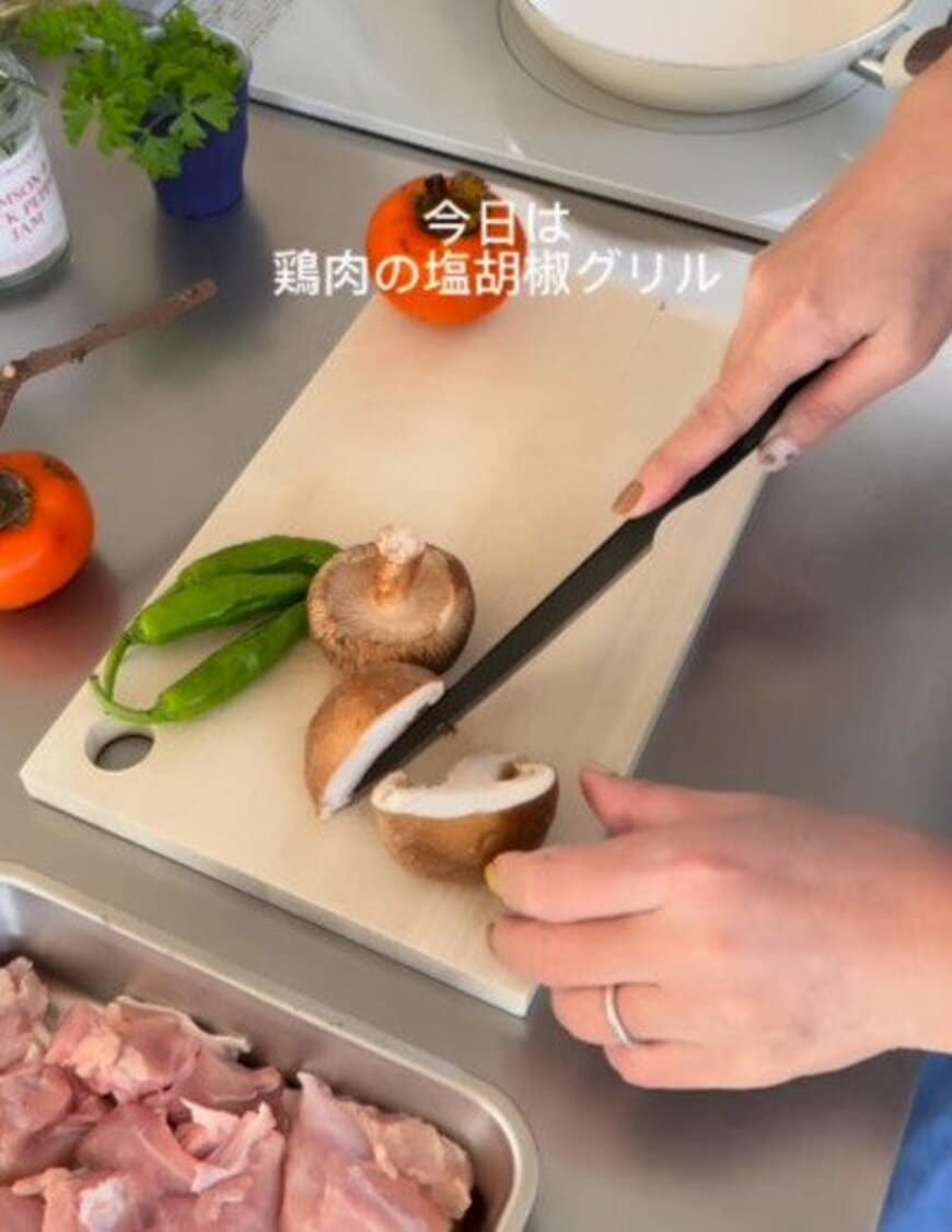 ししとうとしいたけは途中で取り出し、鶏肉はじっくりとグリルしていくそうですよ。