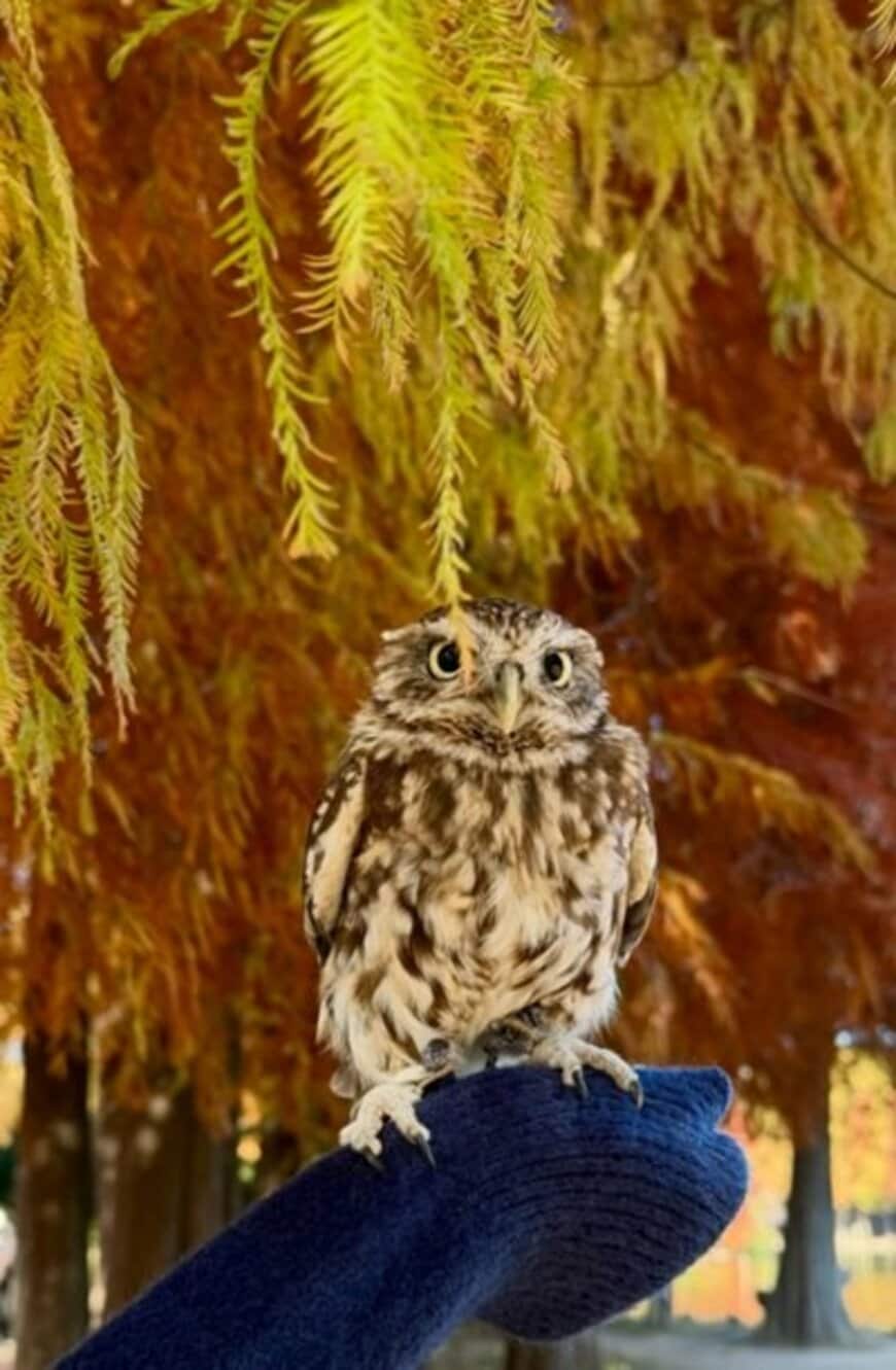 「コキンメフクロウのもずくちゃん」が、イチョウの帽子をかぶる写真がInstagramで話題です。