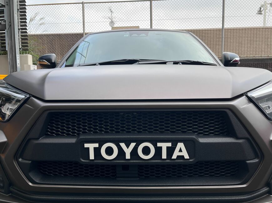 六角形のフロントグリルに、TOYOTAエンブレムが施されているのが印象的で、トヨタの「RAV4 アドベンチャー」や「ハイラックス」のようにも見え、存在感があります。