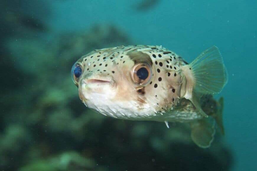 ハリセンボンの口内には「こちらを見る白い何か」が見受けられます。エサやりの歳に違和感を抱いていたという@HOB8092さんは「原因がわかった」と動画を添えて、状況をポストしました。