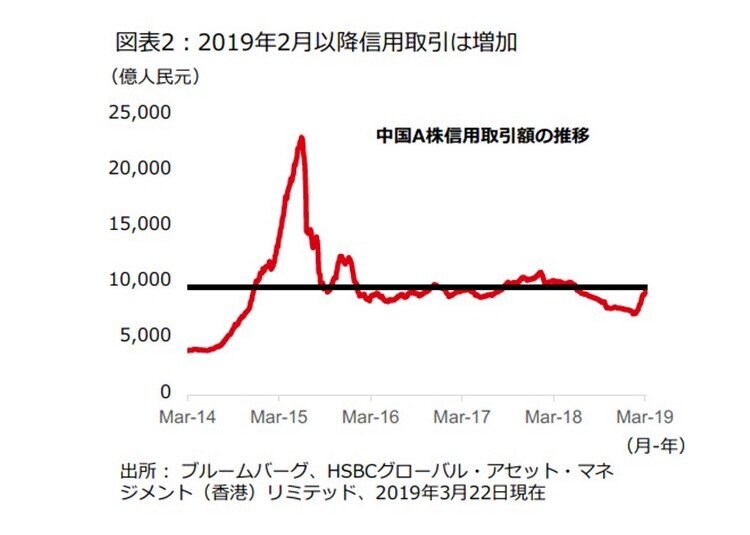 だが今回の株価上昇では市場は強気の度合いを強めている。2018年は悲観論が台頭したが、2019年に入り、米中貿易摩擦が解決に向かうとの期待感の高まり、中国首脳部が政策の軸足を「信用引き締め」から景気を下支えする「経済成長重視」に切り替えているからだ。