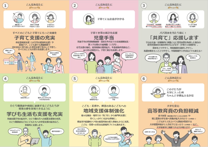 「こども・子育て応援MAP」によると、大きく分けて次の6つのメニューが紹介されています。支援金は、これらの財源として使用される見込みです。