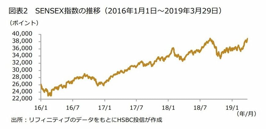 インド株式市場は2019年1月以降、足踏み状態を続けていたが、2月下旬から上昇している(2019年3月29日現在)。国内のインフレ率の落ち着きやインド準備銀行(中央銀行)による金融緩和の動きなどが上昇要因となっている。4月から 5月に予定される総選挙の行方は依然として不透明ながら、3月に入りモディ首相率いる与党インド人民党(BJP)の支持率が回復しており、モディ政権続投との見方が増え、株式市場を下支えしている。