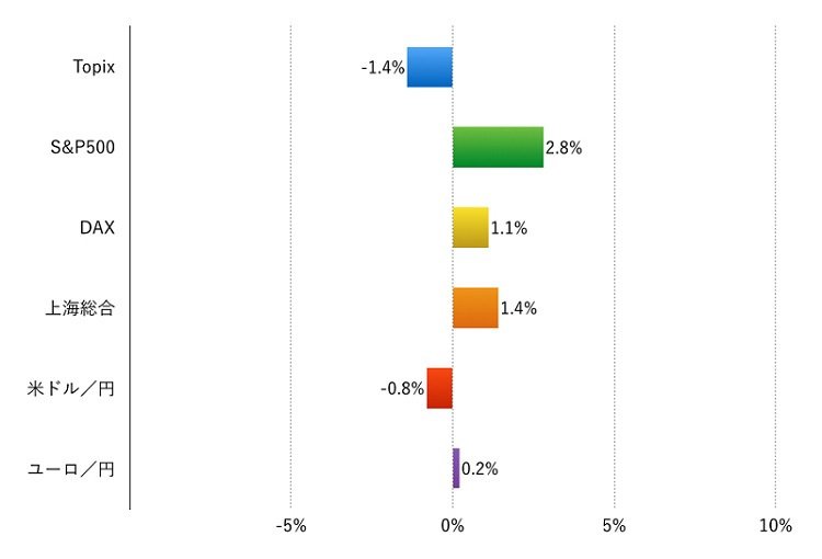 日本株を除き株式市場がほぼ全面高だった1週間