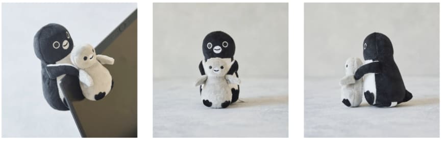 デスクトップ型のパソコンやノートパソコンのディスプレイなどに飾れる、手のひらサイズのひっかけぬいぐるみ。Suicaのペンギンと子ペンギンが一緒のデザインが、チャーミングです。価格は2650円。