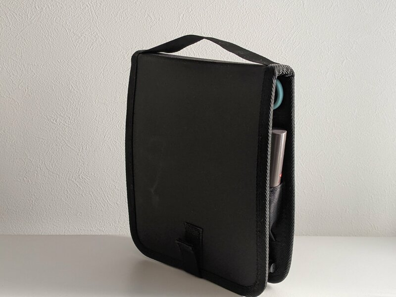 今回ご紹介するのは、ダイソーで販売されている「持ち運べる文具収納ケース(ブラック)」。文具や小物などをまとめて整理できる、スタンド式収納アイテムです。