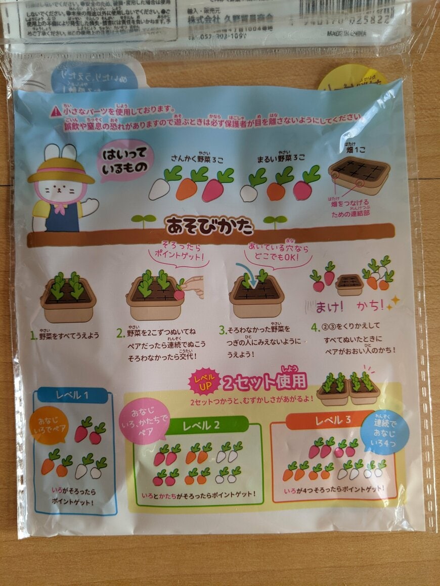 セリアで購入した「ほのぼのファーマーゲーム」は、対戦ゲームとして楽しめるだけでなく、野菜を植えたり抜いたりする触感の楽しさも魅力です。