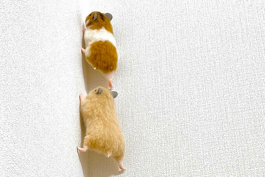 @mof_fluffyさんに、制作のきっかけを聞いてみると「ハムスターのありとあらゆる姿を再現するのが夢なので、その一環として壁を登るハムスターを作りました」と教えてくれました。
