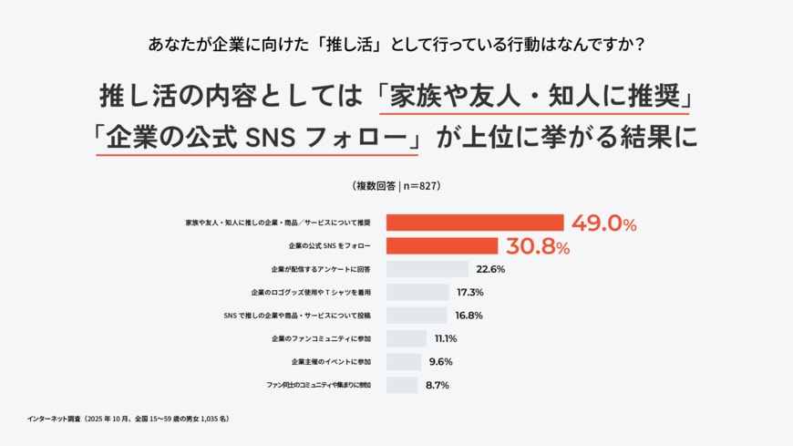 - 家族や友人・知人に推しの企業・商品/サービスについて推奨: 49.0%