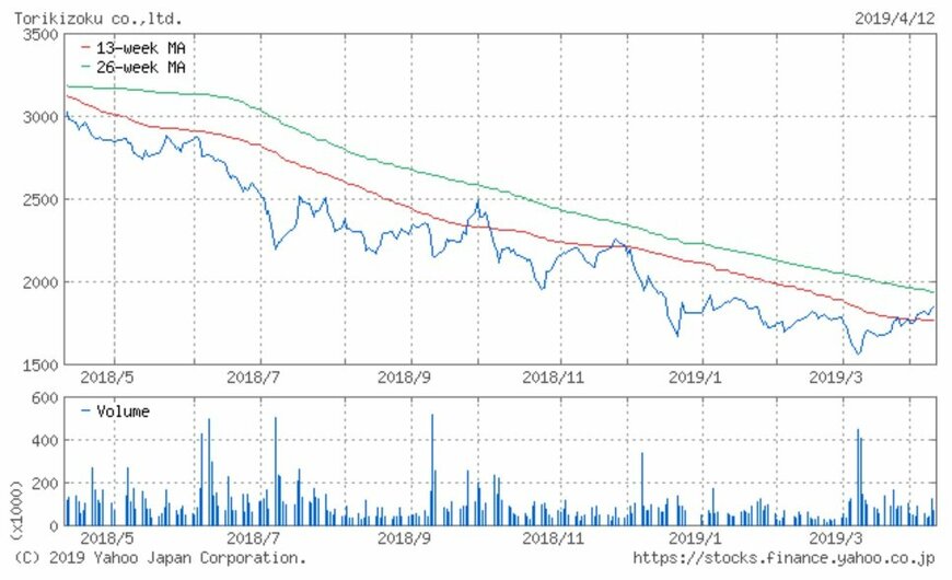 シリーズでお伝えしている「注目小売店月次実績」。今回は焼鳥チェーン店「鳥貴族」を運営する鳥貴族(3193)の、2019年3月の月次動向及び過去実績、また過去1年の株価動向について振り返ってみましょう。
