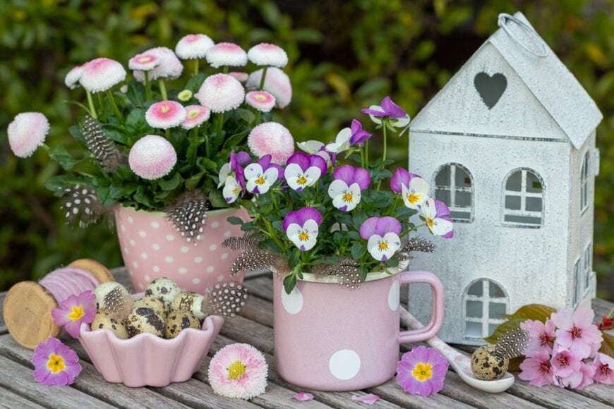 待ちわびた春の寄せ植えには、心を弾ませるような華やかで軽やかな色を選ぶのがおすすめです。ピンクやイエロー、淡いブルーやパープルといった、春の陽光に映える可愛らしい花々で寄せ植えを作ってみませんか。