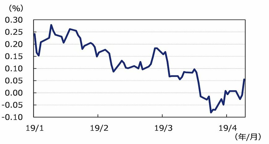 そして、欧州においても、独10年国債利回りが急上昇しています(図表1)。独10年国債利回りはユーロ圏の景況感に対する市場の認識を敏感に反映しており、3月下旬から4月初旬頃にかけてユーロ圏の景気への懸念を背景にマイナス金利に突入していました。