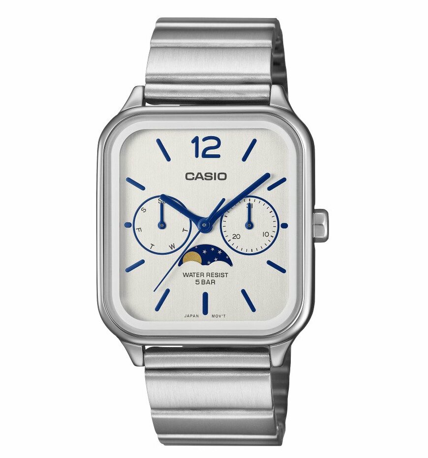 カシオ計算機株式会社から発売されているこのモデルは、洗練されたスクエアケースにムーンフェイズ機能を搭載しています。