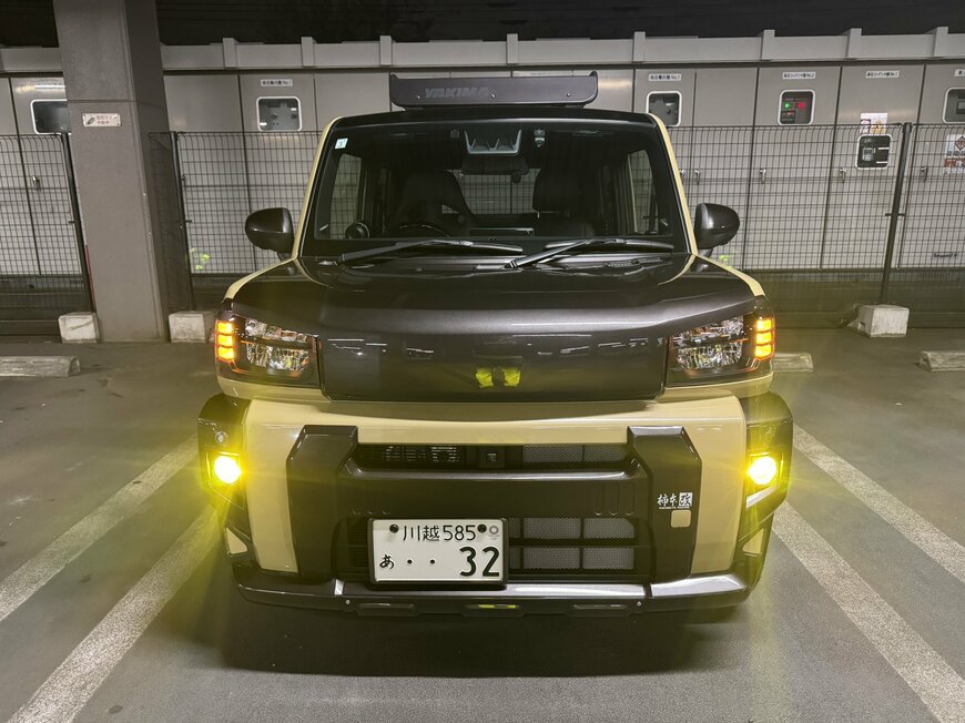 世界に一つだけのボンネットグリルなどはオリジナルのブラックメタリックに塗装。純正ヘッドライトは殻割しており、インナーをマットブラック、ポジションレンズを特殊塗料のクリアーオレンジで塗装しています。
