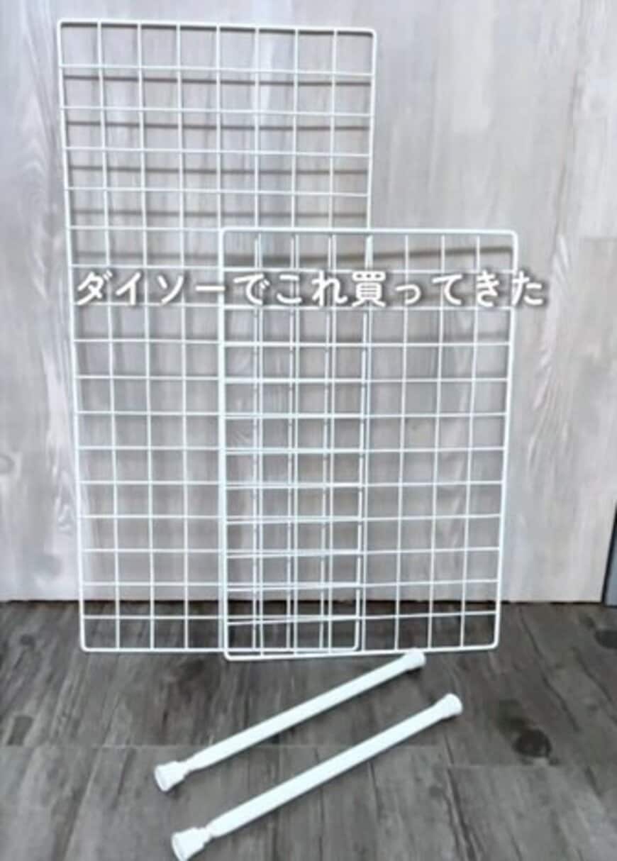 今回の動画では、ダイソーのワイヤーネットと突っ張り棒を使って、ハンガー収納を作ります。