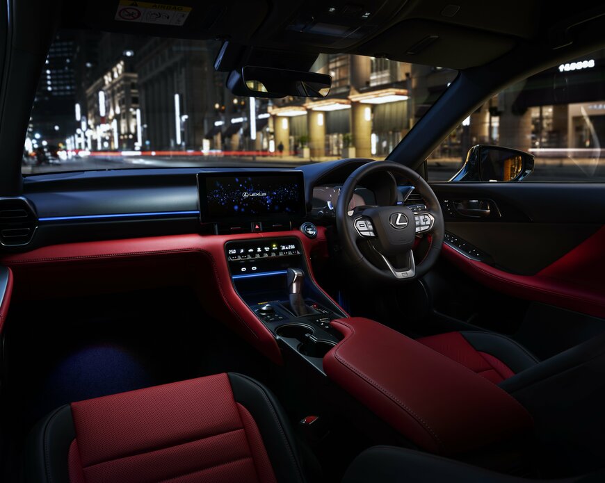 メーカーオプションでLEXUSロゴ入りのレッドブレーキキャリパーを選択することも可能。インテリアカラーに新規開発色「PROMINENCE(プロミネンス)」を加えているのも見逃せません。