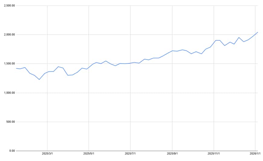 - 年初来高値:2074円(2026年1月6日)