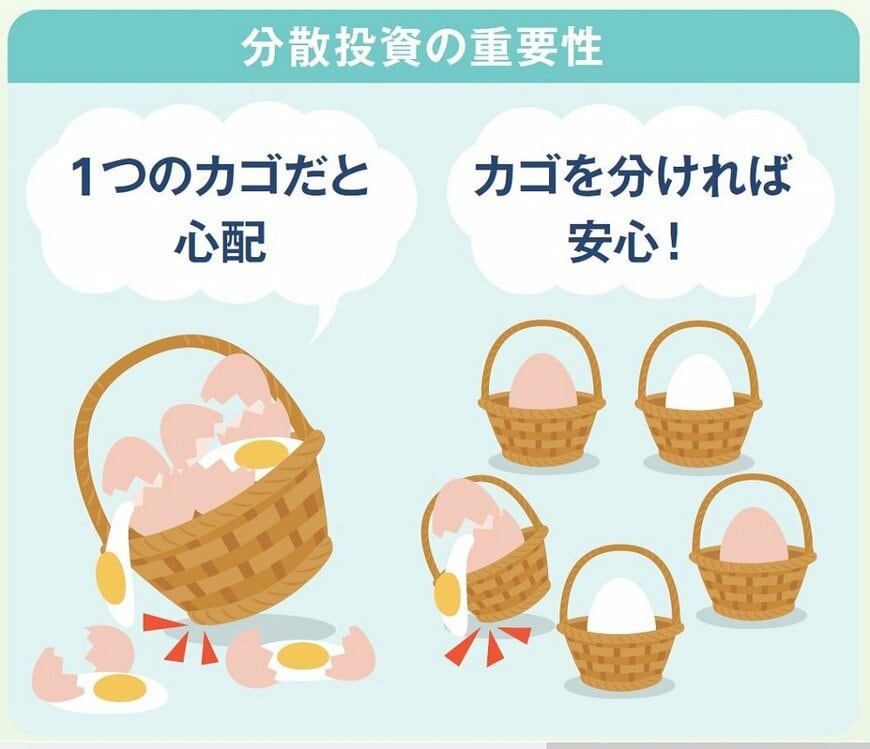 投資の格言に「すべての卵をひとつのカゴに盛るな」という分散投資の大切さを示した言葉があります。ひとつのカゴに卵を盛ると、そのカゴを落とした時に卵が全部割れてしまい、台無しになってしまうところから、1つの資産クラスに集中投資するのではなく、様々な資産クラスにバランス良く投資をする分散投資の重要性を示しています。